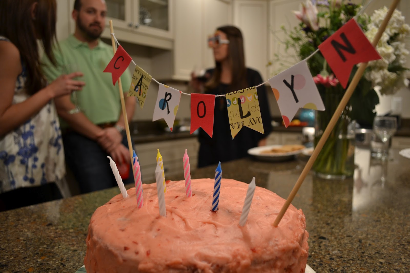 I made a strawberry cake and Ali, Carolyn's sister, made the cake banner.